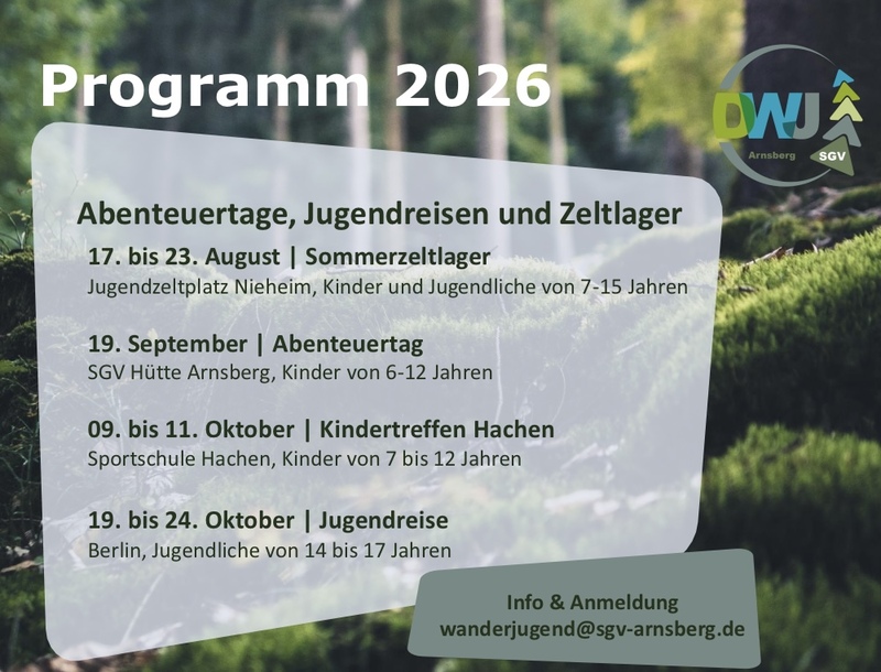 Das Jahresprogramm des Landesverbands der Deutschen Wanderjugend LV NRW e.V. findet ihr unter diesem Link.